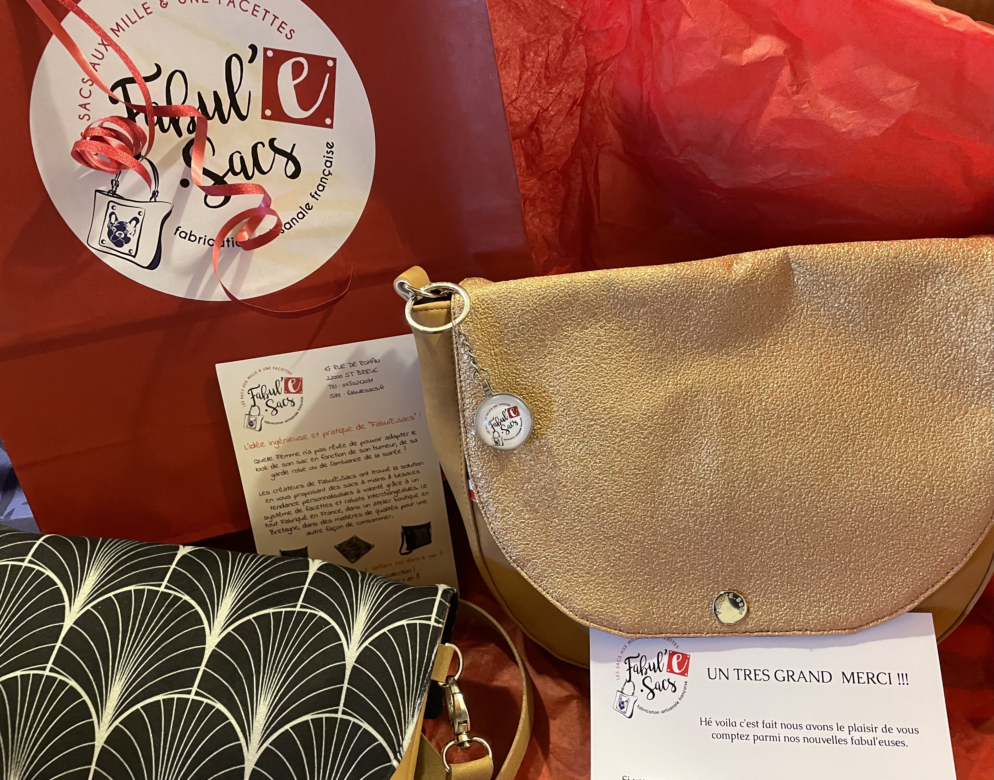 Ravie de mes achats, les sacs sont merveilleux, très jolis et très pratiques. Le rapport qualité prix est excellent, et il y a un large choix de facettes pour tous les goûts, j’adore pouvoir changer selon mon humeur du jour 😊 Et en plus de ça, la boutique est charmante, et j’aime beaucoup les vidéos et lives que vous faites sur les réseaux 😉 Félicitations pour votre travail et continuez comme ça 👍